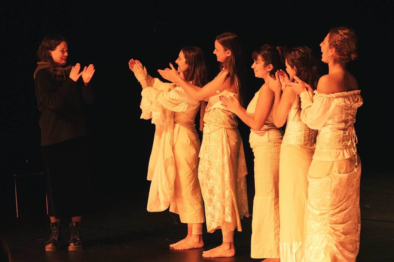 Jury lycéen : lycéen·nes de seconde, première et terminale option Théâtre du lycée Joliot-Curie de Nanterre, avec leurs enseignantes Teresa Canavo et Elise Zeniter.